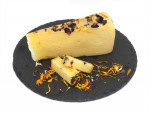 Der Käse ist mild würzig, mindestens 8 Wochen gereift und wird anschließend mit einer ausgewählten Blütenmischung affiniert.